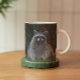 For wildlife and nature fans! Enjoy your favourite hot or cold beverage in this coffee mug that features a photo image of a cute, forest racoon posing for his "mug" shot. Image printed on both sides of mug. Select your mug style and colour.