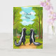 Express your love with this cute greeting card featuring a pair of skunks walking down a forest path holding hands. Each one is carrying a basket of wildflowers the just collected. Surrounded by lush green trees, grasses, blue sky and woodland charm, this sweet little couple are in love and enjoying a peaceful day together in the forest.