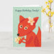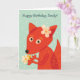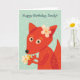 Cute fox personalised birthday card with a vector illustration of a cartoon fox with big eyes and flowers on her head, holding a bunch of flowers in its paws. This artwork has cheerful bright orange and light blue colours and is simply fun. This cute birthday cards has a "Happy Birthday!" greeting with customisable name.