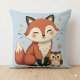 Cute Fox and Owl Whimsical Woodland Illustration Cushion