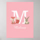 This cute pink poster features a woodland forest baby fox cub and bunny rabbit sitting on either side of the monogram and name. Designed by Thisisnotme©