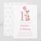 Cute Fox & Balloon Pink 1st Birthday Invitation