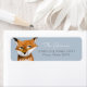 a modern cute woodland christmas holiday label with a hand painted fox on a blue background. Original artwork by Caroline Bonne Müller