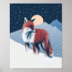 Beautiful fox in the winter snow, digital painting illustration on poster.