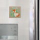 Cute green eyed fox wrapping its tail around a coffee cup, personalised magnet.