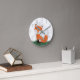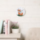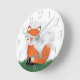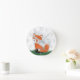Cute Fox Personalized Gender Neutral Round Clock for mom to be to add to her baby nursery. Gray watercolor background, numbers and name, Perfect baby shower gift for baby girl. Matches the Be Clever wall art.