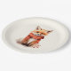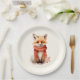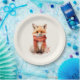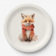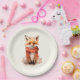 Paper plates with an illustration of a reddish orange fox pup. A subtle smile on his face. Wearing a nice red scarf for warmth.