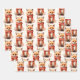 Wrapping paper sheets with an illustration of a reddish orange fox pup. A subtle smile on his face. Wearing a nice red scarf for warmth.