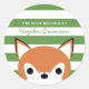 Cute sticker to put on your books! Green and white stripes, and an adorable orange fox.
