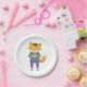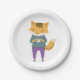 Cute fox with cup of tea paper plate
