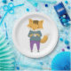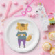 Cute fox with cup of tea paper plate