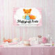 Super cute fox with balls of yarn on this craft show banner for knitters, knitting and crochet, handspun or homespun yarns and other yarn crafts.