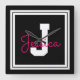 Cute Framed Name & Monogram | Black White & Pink Square Wall Clock