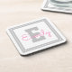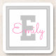 Cute Framed Name & Monogram | Light Grey & Pink Coaster