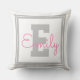 Cute Framed Name & Monogram | Light Grey & Pink Cushion