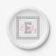 Cute Framed Name & Monogram | Light Grey & Pink Paper Plate