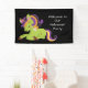 Halloween party banner with an image of a Frankenstein style unicorn. Purple and green colours. Spooky cute.