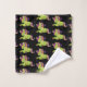 Towel set with a repeating image of a Frankenstein style unicorn. Purple and green colours. Spooky cute.