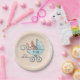 Cute French Bulldog Pup Blue Stroller Baby Shower Paper Plate