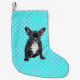 Cute French Bulldog Puppy Blue Polka Dots Small Christmas Stocking