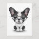 Cute French Bulldog Puppy with Glasses, white Postcard