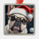 Cute French Bulldog Santa Christmas Holiday Design Metal Tree Decoration