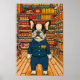Adorable French Bulldog in their late 30s, depicted in a cute and humourous style, making it a perfect addition to any dog lover's collection. This poster features a hardworking bulldog, adding a playful touch to any room decor.