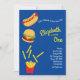 These adorable mod colourful cute french fries, hot dogs and hamburgers fast food birthday party invitations are perfect for a kids backyard BBQ 1st birthday celebration! Customise the text to make them your own. The modern look and feel is the perfect way to celebrate your little one that loves fast food burgers and french fries on their first birthday!
