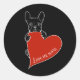 Cute Frenchie Dog with a Red Heart Classic Round Sticker
