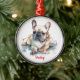 Cute French Bulldog Christmas ornament for your Frenchie! Original watercolor art by Nicole. Personalise with a custom name.