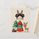 Cute Frida Kahlo Minimalist Cartoon Christmas Postcard