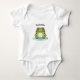 A Baby Bodysuit with an illustration of a cute frog on its pond and customisable text above! A nice gift idea for a baby shower or for parents who are expecting a child. It is suitable for both boys and girls!