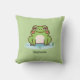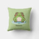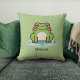 A green pillow with an illustration of a cute frog on its pond and customisable text below! Perfect to add a funny touch to a kid's room!