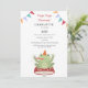 Cute Frog Hop Hop Hooray Mushroom Plaid Birthday Invitation