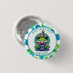 Cute birthday boy button. An adorable frog in a birthday hat holding a gift with a cute polka dot background in blue and green. Edit the text in the personalise area.