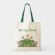 Cute cartoon frog canvas tote bag, with green text reading Spring Fever. Spring is in the air with this adorable country graphics of a big frog surrounded by butterflies and flowers. Personalise the text to read anything you want. Great reusable tote bag for all your everyday chores.