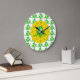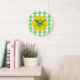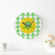 Cute frog wall clocks with green and white colours with little frogs pattern on the clock face in this colourful wall decor animal clock design for your kitchen, bathroom, or any room in your house you want to add some colour and character. Great for kids rooms either boys or girls.