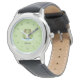 A green watch with numbers, an illustration of a cute frog on its pond and customisable text below! A nice gift for a birthday kid, the numbers will allow him to learn the times more easily!