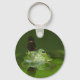 A cute green frog sitting on his lily pad in a pond, with his face poking out above the surface of the water. A curious butterfly sits on his nose. These cute critters look like they could be best friends