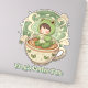 A cute boy in a frog suit sitting in a coffee cup reading a book. Perfect gift for coffee and book lovers alike.