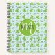 This notebook features adorable frogs, reeds and water lilies on a bright green background. The monogram combines handwritten script fonts for a cute and whimsical look. This will make the ideal gift as it can be customised with a name and initial. If you would prefer the pattern on its own you are able to delete the text and border.