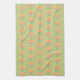 A kitchen towel that features a pattern of smiling cantaloupe cartoon characters.