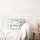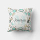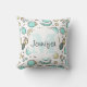 A pillow with a cute fruit pattern line drawing style. Light green and yellow colours. A fun summery design. A white circle layered over top with your name and monogram initial inside.
