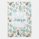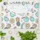 Kitchen towel with a cute fruit pattern line drawing style. Light green and yellow colours. A fun summery design. A white circle layered over top with your name and monogram initial inside.