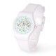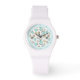 A watch with a cute fruit pattern line drawing style. Light green and yellow colours. A fun summery design.