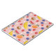 Adorable seamless fruit pattern featuring smiling bananas, strawberries, oranges, blueberries, coconuts, watermelon slices, and tiny white daisies on a soft pink background. Perfect for summer designs, fabric, stationery, gift wrap, kids’ products, and kitchen decor. This playful fruity illustration adds a fresh, cheerful, and kawaii vibe to any creative project.