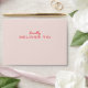 This classic yet modern holiday envelope features whimsical hand-drawn Christmas illustrations in red and dark green over a light pink background. Your name and return address are printed on the back. The look is fun, modern, and festive! Coordinates with our Christmas Doodles holiday collection. DESIGN TIP: Background and text colours are customisable by using the editor tool.