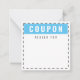 Front: Black dashed line border to look like a coupon clipping. Top section has a sky blue background with white text that says "COUPON" in a strong bold font. Below it is "REDEEM FOR" in a thin black coordinating font for a minimalist look. The white area underneath is left blank for your handwritten coupon details (or add text to this design before ordering).