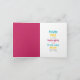 Inside, on one side a pink twinkly, simple background and on the other a colourful, punny message from the tooth fairy in a playful fun font saying - Thank you for your teeth-rific, totally floss-ome, sweet! Tooth.