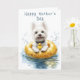 🖤 This whimsical and fun illustration features a fluffy white West Highland Terrier (Westie) joyfully floating on a golden inflatable ring, with a tiny yellow rubber duck. The playful splash of water and the pup’s happy expression bring a sense of summer fun and carefree delight. The artwork leans towards cottagecore with a touch of whimsy, evoking cheerful, nostalgic vibes. The style resembles a realistic yet slightly stylised watercolor illustration, with soft shading and lively movement in the water……......... 🖤 NOTE 1. All items with this particular design share my unique identifying “Letter/s Number/s” label in the title for easy searching